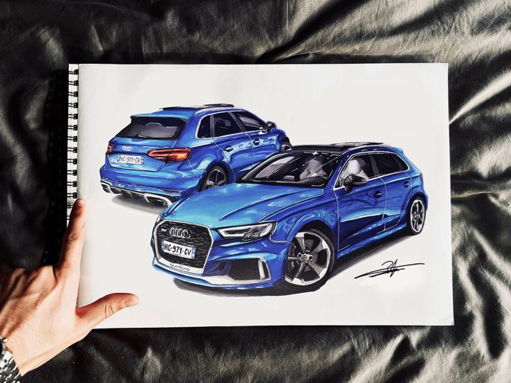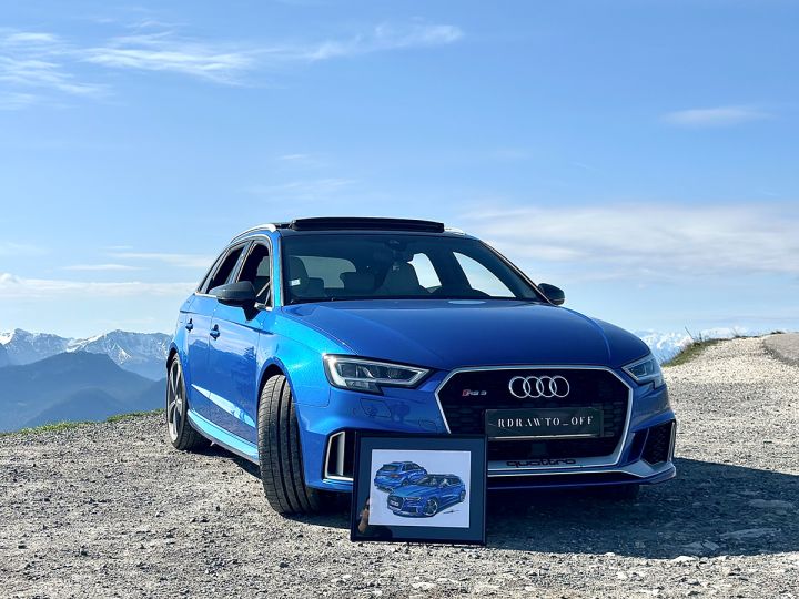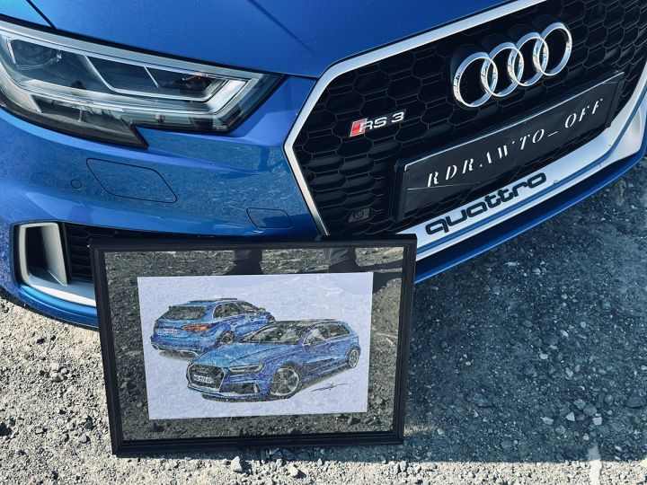 Tableau sur mesure, réalisé à la demande d’un particulier, illustrant son Audi RS3.